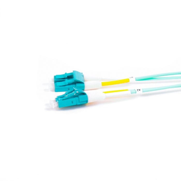 FO Patchcord, MM, OM3, Duplex, 1.8 mm, LC/PC Shortboot aqua, 010.0 meter