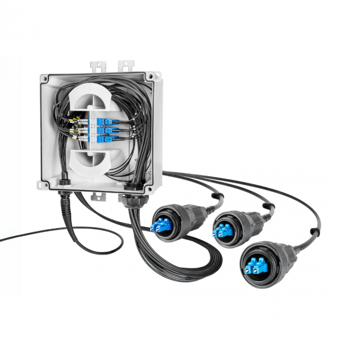 - Mast-, toren- en gevelinstallaties waar betrouwbare glasvezelverdeling vereist is