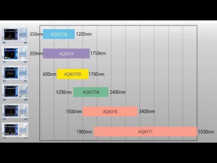 - De AQ6374 als zeer veelzijdig toestel voor metingen aan zowel zichtbaar licht als in golflengten gebruikelijk in telecom toepassingen (350–1750 nm)